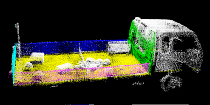 面向颗粒状谷物的自动扦样,通过激光雷达传感器的扫描,工业彩色相机拍照和人工智能技术的自动分析,准确计算卡车参数,最优化取样方案,与扦样机联动实现扦样检测的自动、快速、合理。利用激光雷达传感器实现卡车的自动扫描,获取卡车的点云模型,工业相机获取车厢俯视图,通过人工智能算法分析,全方位分析卡车姿态、车厢位置高度信息、智能规划合理扦样策略。